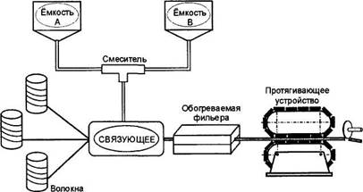 него летучих компонентов. Во второй зоне пакет пропитанных жгутов формуется до
