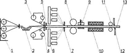 устройство; 12-отрезное устройство; 13-готовое профильное изделие