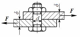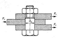 - Болт М16 из стали 45 поставлен в соединение двух деталей без зазора. Определить максимальную статическую нагрузку F, действующую в плоскости стыка деталей, предаваемую этим соединениям. Сравнить нагрузки при постановке этого же болта с зазором при неконтролируемой затяжке и коэффициент трения в стыке деталей f=0,2.