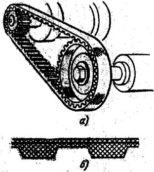 - клиноременные (поперечное сечение ремня в форме трапеции, рис.2, б);