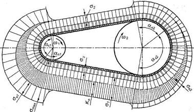 возникающими на поверхности контакта шкива с ремнем вследствие его натяжения,