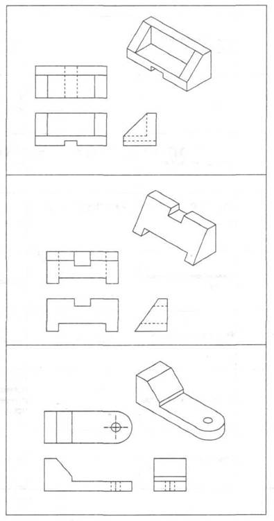На рис. 2 даны изображения различных деталей в американской системе плоскостей проекций.