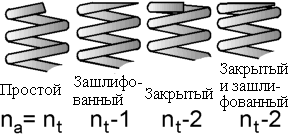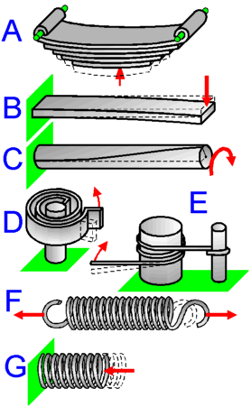 машин. Плотно навитые из круглой проволоки винтовые пружины растяжения (F) и сжатия (G) являются обычными элементами машин. Неметаллические «пружины», изготовленные из резиновых блоков, используют для защиты элементов машин от вибрации. |